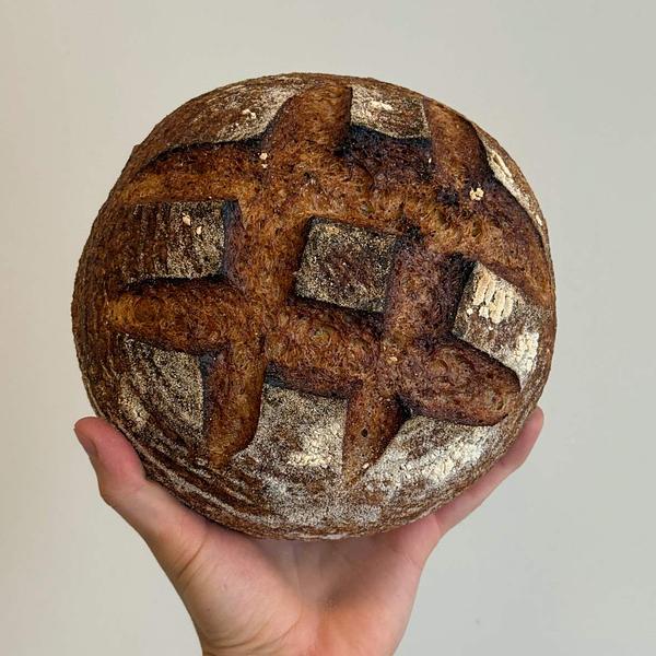 Chleb 100 % żytni ekologiczny, z dodatkiem świeżo kruszonego ekologicznego ziarna żyta.